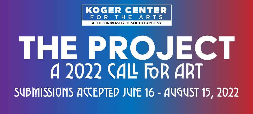 The Project: A 2022 Call for Art is the Koger Center’s annual artistic competition that supports the work of South Carolina visual artists. Each year, one chosen artist will receive a $500 stipend, gallery space, and staff support resulting in a free public display in the Upstairs Gallery of the Koger Center. Submissions for this year’s project will be accepted from June 16, 2022 through August 15, 2022.